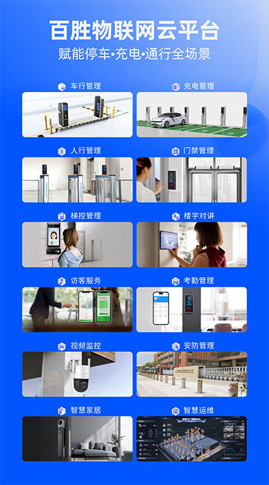 百勝物聯(lián)網(wǎng)云平臺是專為智慧停車、新能源車充電、出入口通行管理場景,以AI、IoT數(shù)字底座及場景業(yè)務(wù)開發(fā)能力,構(gòu)建多品類產(chǎn)品的互聯(lián)互通,實現(xiàn)停車、充電、門禁、訪客、考勤、梯控、監(jiān)控等多場景應(yīng)用。