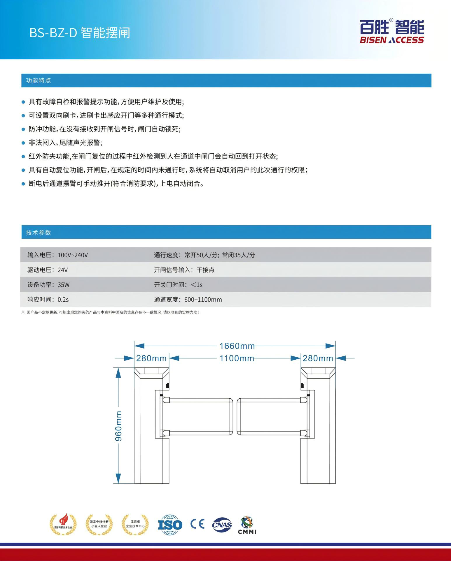 ● 斷電后通道擺臂可手動(dòng)推開(符合消防要求),上電自動(dòng)閉合。