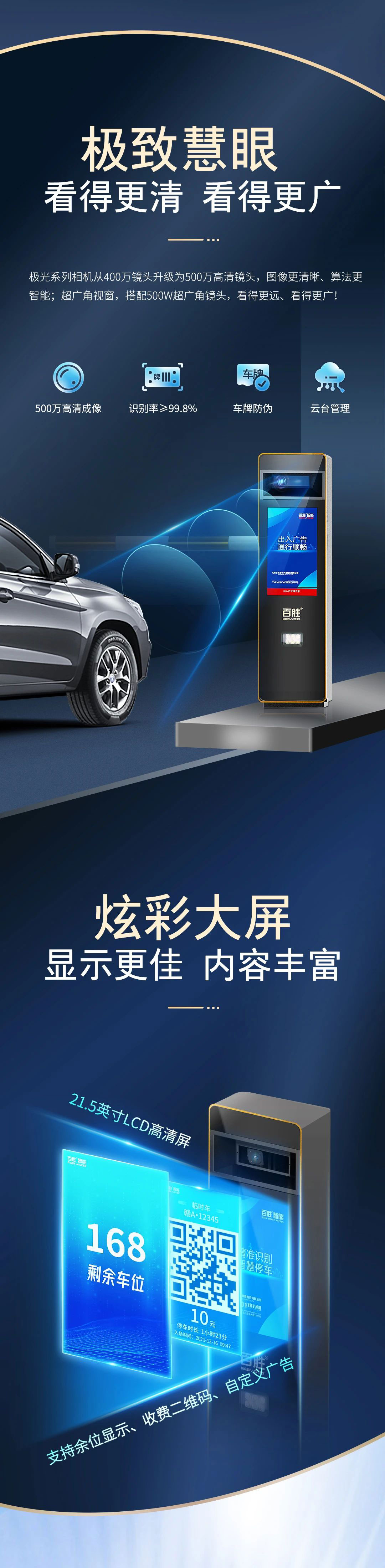 21.5寸LCD高清屏實時顯示車位剩余數(shù)、支付二維碼、自定義廣告;