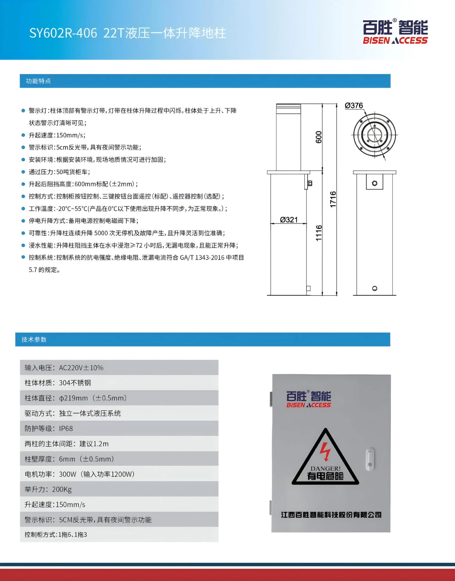 警示燈:柱體頂部有警示燈帶,燈帶在柱體升降過程中閃爍,柱體處于上升、下降狀態(tài)警示燈清晰可見;